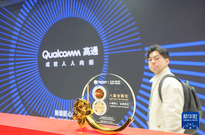 11月6日,觀眾在第八屆進博會技術裝備展區高通展臺參觀。高通是進博會八屆“全勤生”。新華社記者 任鵬飛 攝