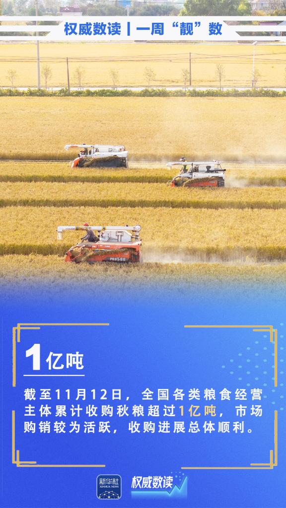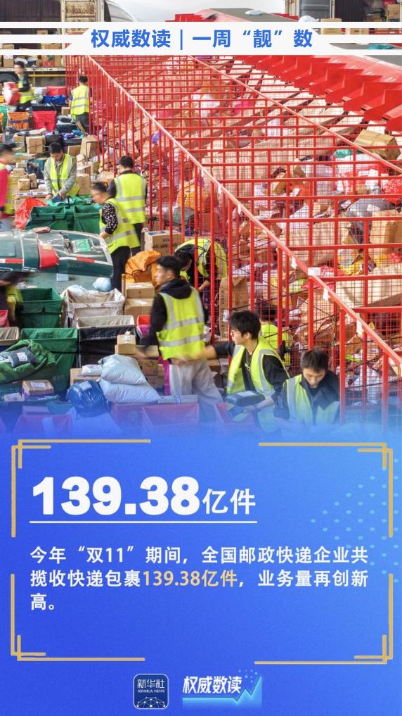 10月份,全國規上工業增加值同比增長4.9%;今年“雙11”期間,全國郵政快遞企業共攬收快遞包裹139.38億件,業務量再創新高;截至11月12日,全國各類糧食經營主體累計收購秋糧超過1億噸……本周這些數據,最值得關注!