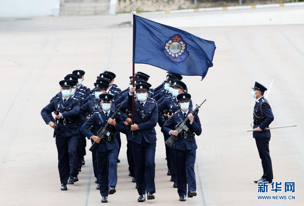 鮮艷的五星紅旗,被香港警察學院升旗手奮力一揮,迎風飄展,徐徐直上。