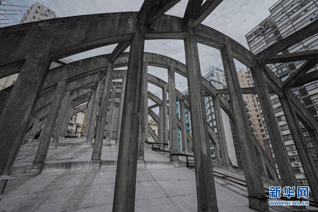 這是4月29日拍攝的香港皇都戲院樓頂上的拋物線型大型飛拱建筑設計。新華社記者 呂小煒 攝