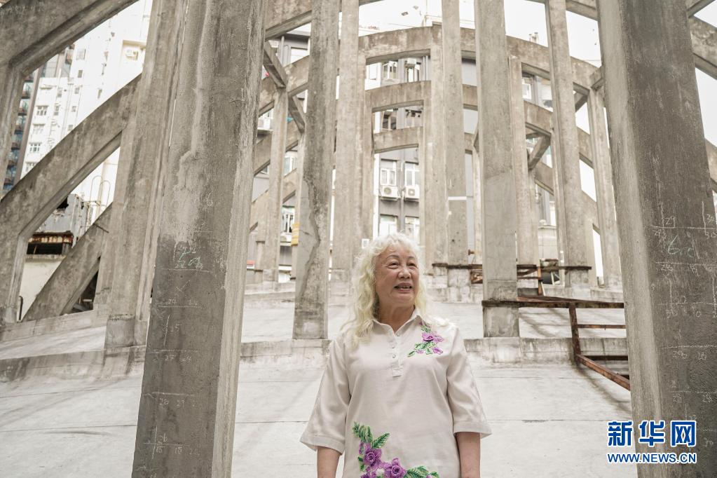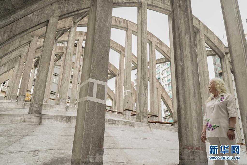 5月6日,香港皇都戲院老員工馬淑華在參觀戲院樓頂上的拋物線型大型飛拱設計。新華社記者 呂小煒 攝