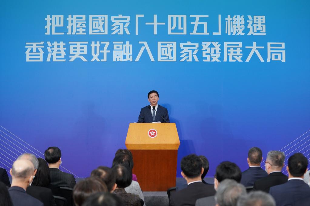 ? 新華社香港8月23日電(記者陳舒、申鋮、查文曄)8月23日上午,國家“十四五”規劃宣講團首場宣講活動在香港特區政府總部舉行,與會人士圍繞“把握國家‘十四五’機遇 香港更好融入國家發展大局”,深入研討國家政策給香港帶來的新機遇。香港特區行政長官林鄭月娥、香港中聯辦主任駱惠寧、國家發展改革委副主任寧吉喆、國務院港澳辦副主任黃柳權發表致辭,香港特區政府官員、行政會議成員、主要大學校長等160余名嘉賓與會。
