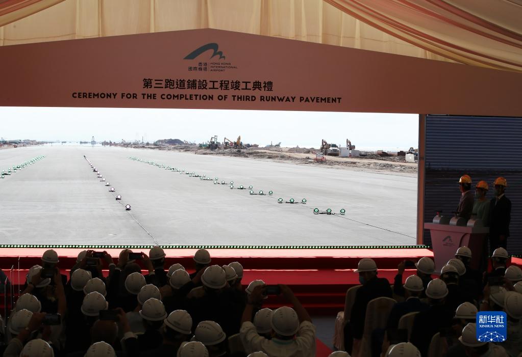 新華社香港9月7日電? 香港國際機場第三跑道的鋪設工程近日完成,香港機場管理局于7日舉行竣工典禮,這是香港國際機場三跑道系統項目的重要里程碑。