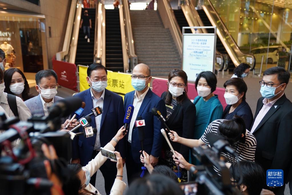 9月19日,2021年香港特別行政區選舉委員會界別分組一般選舉舉行。這是在香港會議展覽中心投票站,選民在投票后離開。新華社記者 王申 攝