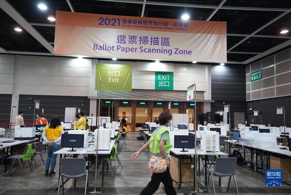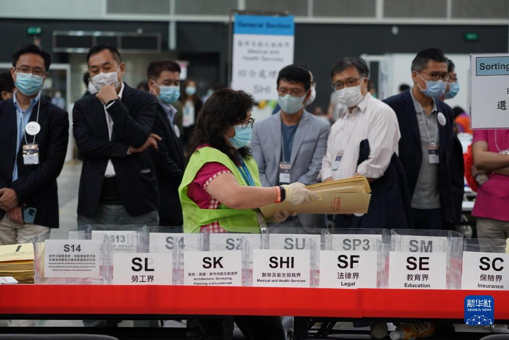 9月19日,2021年香港特別行政區選舉委員會界別分組一般選舉舉行。這是工作人員開始點票工作。新華社記者 呂小煒 攝