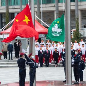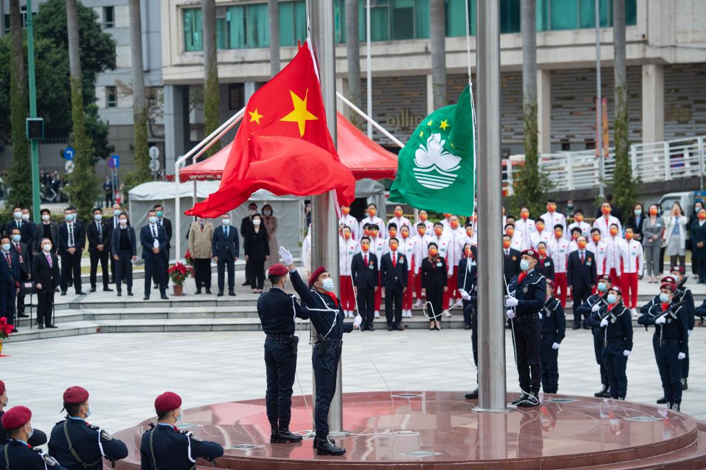 12月20日,澳門特區政府在金蓮花廣場舉行升旗儀式,慶祝澳門回歸祖國22周年。新華社記者 張金加 攝