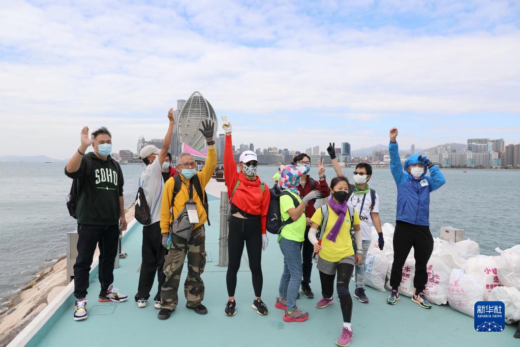 義工在海邊撿垃圾(2021年12月7日攝)。新華社記者 吳曉初 攝