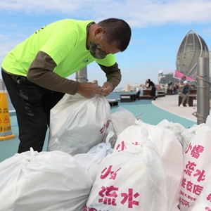 崔老伯印象最深的是去年11月在火星洞海岸的一次行動,當天撿拾了近400袋垃圾,如何運送成了難題。崔老伯說,海岸離公路隔著一個陡峭的山坡,“坡度很陡,而且都是泥沙碎石,爬上去都難,更別說搬運垃圾了”。后來貓哥想出了辦法,讓大家挨個站在山坡上形成人體傳送帶,手手相傳,硬是把這些垃圾運到了垃圾車能到的公路邊。