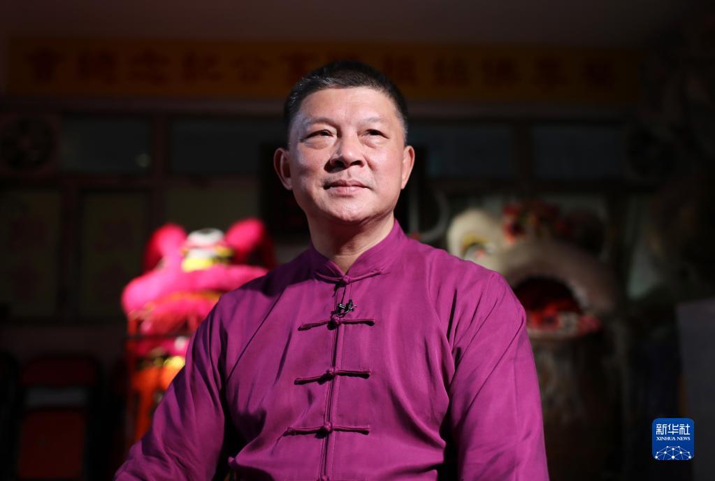 香港蔡李佛胡旭春國術醒獅會會長胡旭春接受記者采訪(1月20日攝)。新華社記者 李鋼 攝