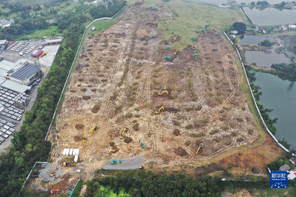 2月22日拍攝的香港洪水橋臨時性社區隔離治療設施建設現場。新華社發