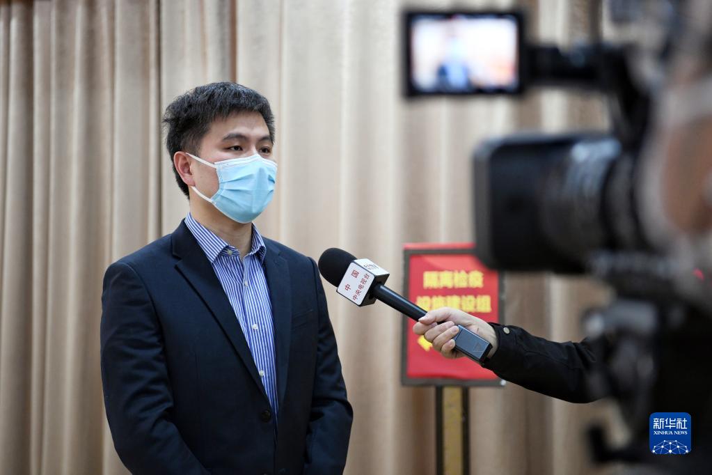 2月22日,內地支援香港抗疫工作專班隔離檢疫設施建設組成員謝暉接受媒體采訪,介紹相關情況。新華社記者 梁旭 攝