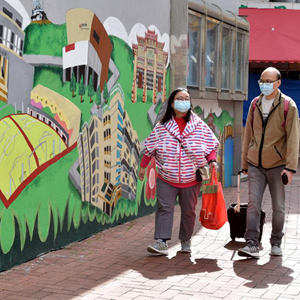 2月28日,在香港荃灣,市民佩戴口罩出行。新華社記者 盧炳輝 攝