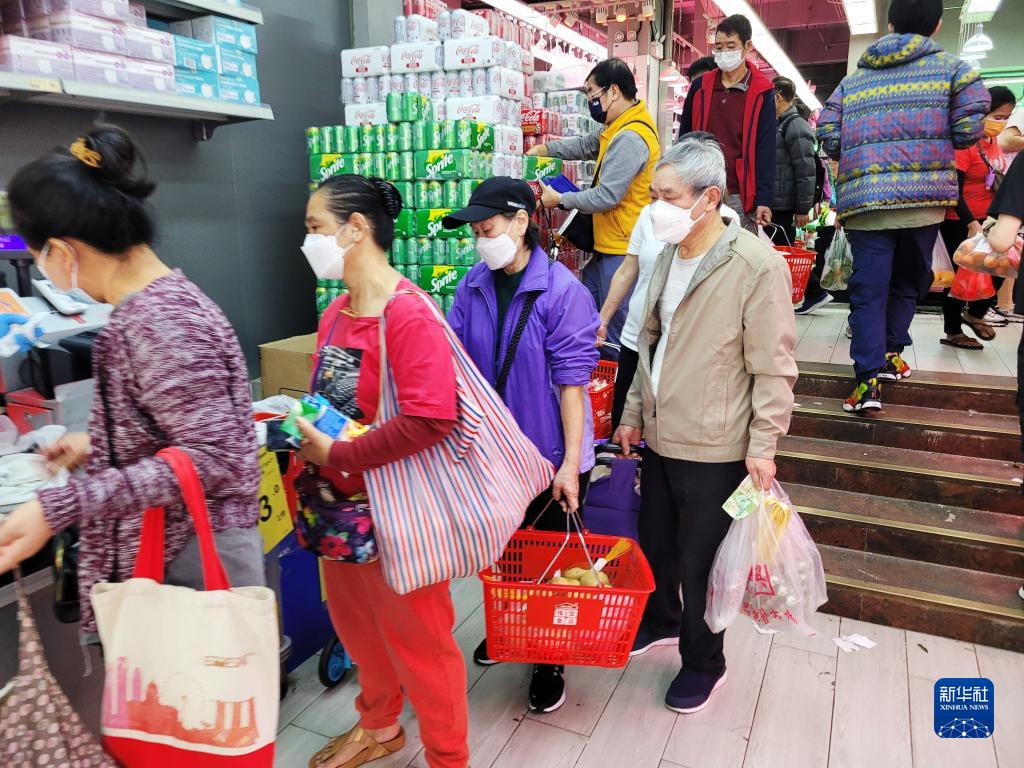 3月1日,市民在香港紅磡一家超市排隊結賬。新華社記者 王申 攝