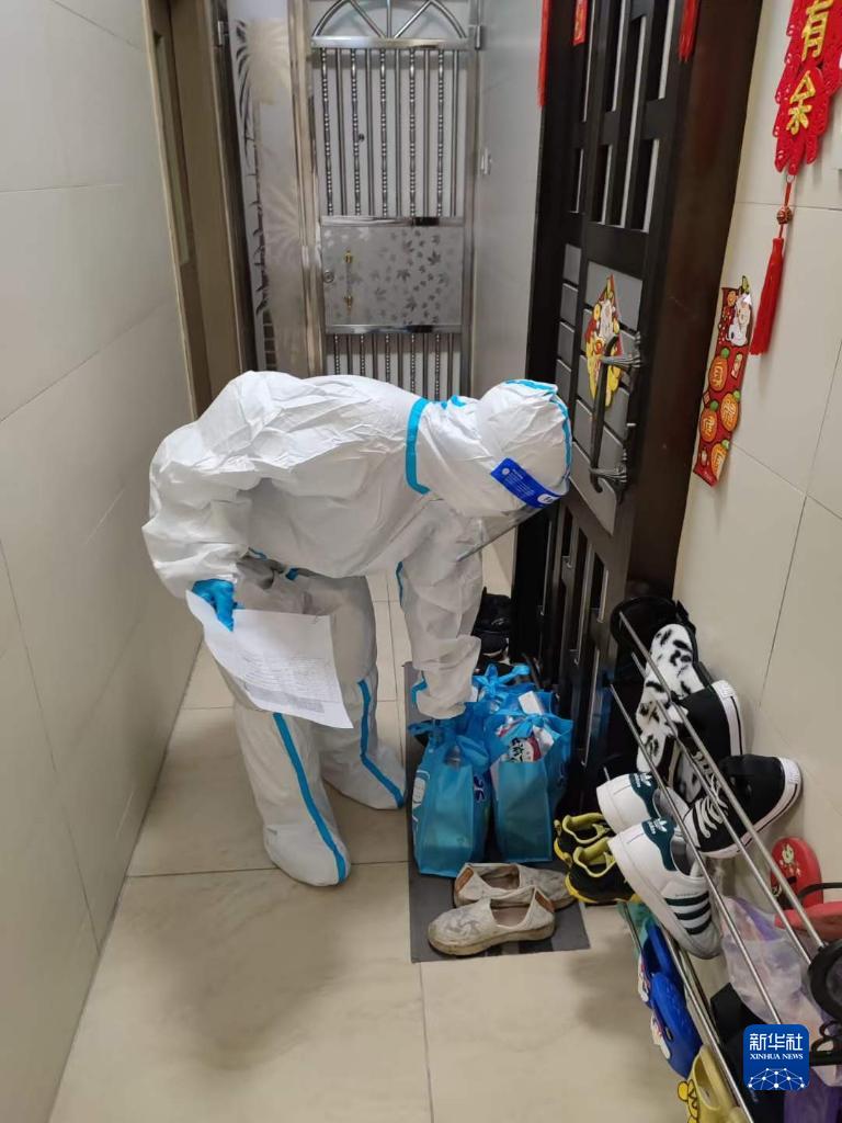 “每天上樓十多次。每天送完,人都快散架了?!蓖跷髌颊f。因為穿著防護服,每天她身上都被汗水濕透好幾回。有一次她到深水埗一座唐樓送貨,拎著兩袋共10來斤重的米、面、罐頭和藥,一口氣爬了7樓。