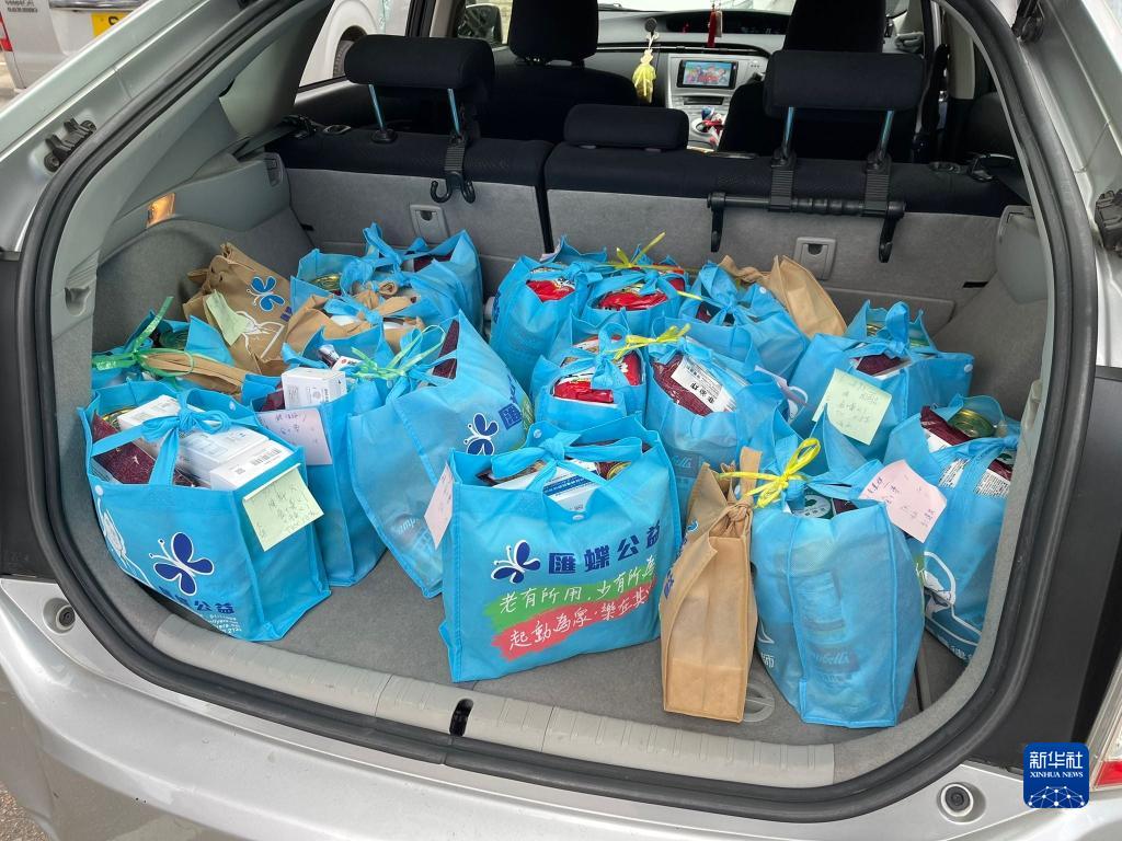 香港公益慈善團體“匯蝶公益”的義工將求助街坊所需的物品裝車完畢,即將被盡快派送到求助街坊家中(資料照片)。新華社發(受訪者供圖)