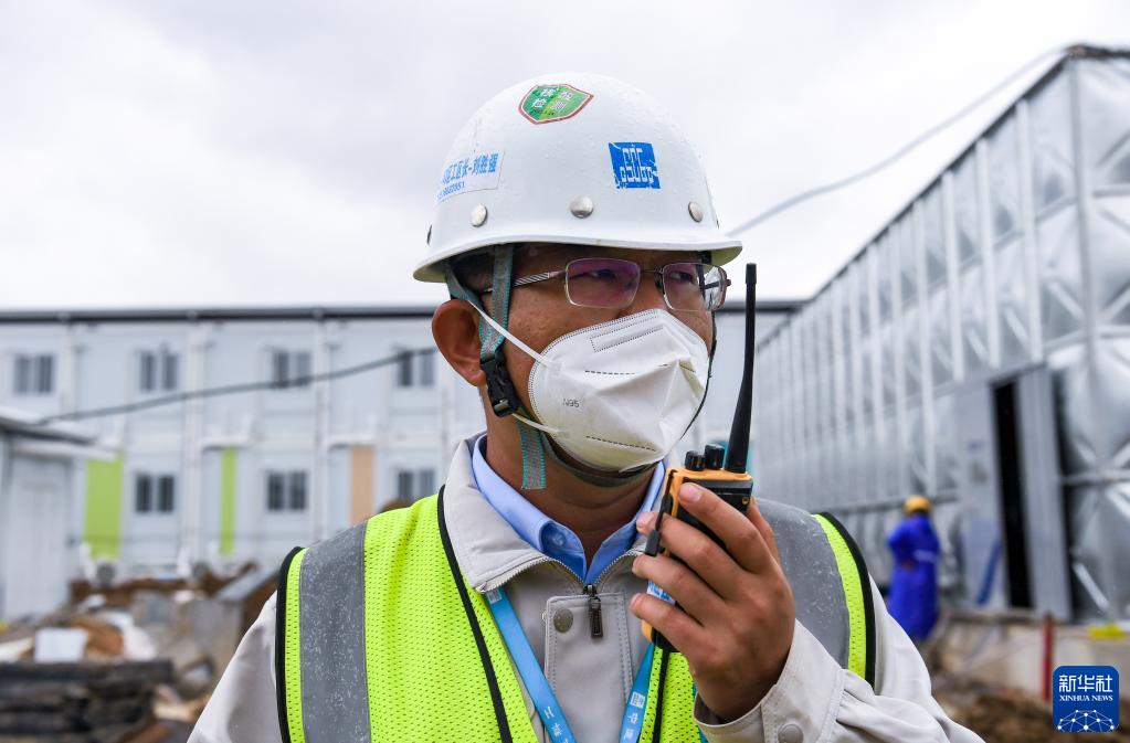 4月2日,一期醫院A3工區長劉勝強在施工現場。新華社記者 梁旭 攝
