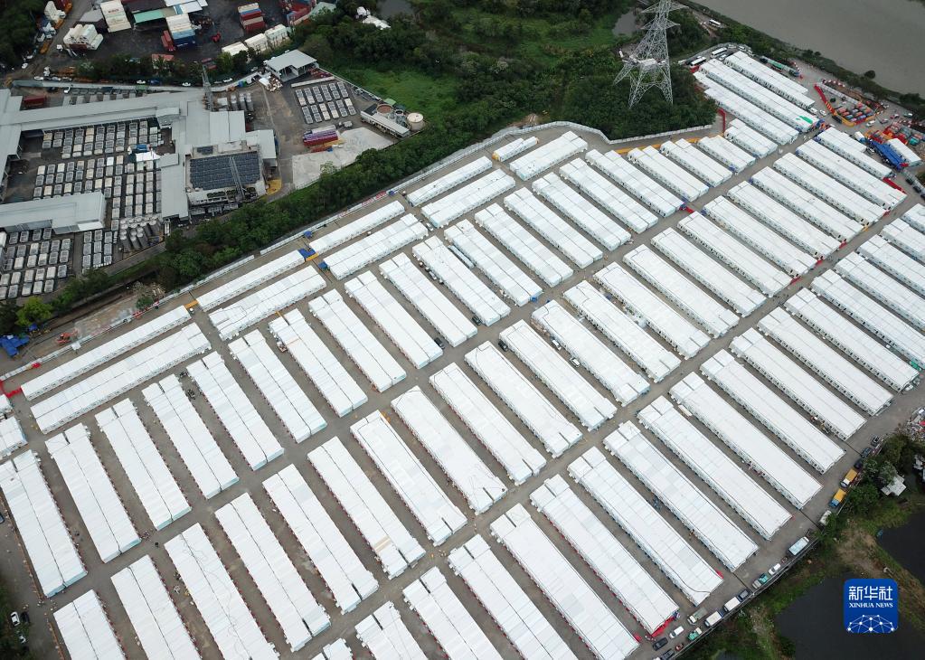 3月24日拍攝的香港元朗社區隔離設施(無人機照片)。新華社記者 李鋼 攝