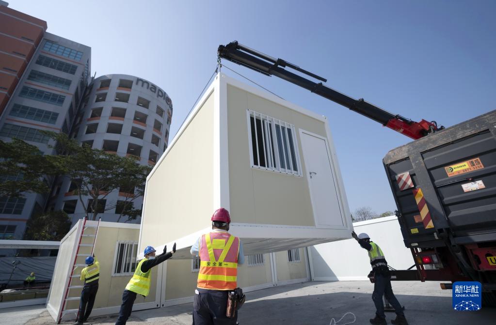 2月26日,工作人員在青衣社區隔離設施項目建設現場施工。新華社記者 呂小煒 攝