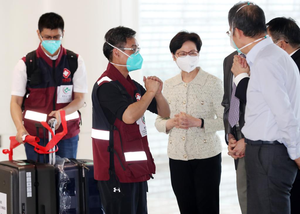 張忠德是呼吸急危重癥、新發突發傳染病救治工作專家,有深厚的中醫功底和豐富的救治經驗。此次出征的300人內地援港醫療隊,是他支援抗疫歷程中帶隊人數最多的,其中有防控、救治、護理等各方面的專家。