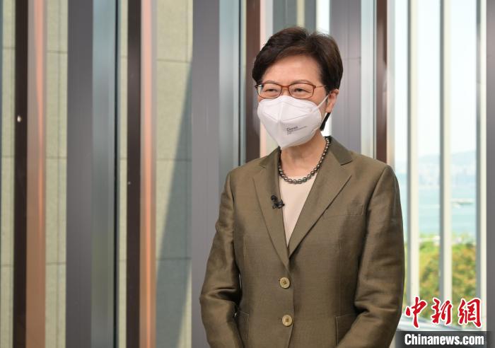 4月27日,香港特區行政長官林鄭月娥在“香港智營設計·閃躍大灣區2022”啟動儀式通過視像致辭?!∠愀厶貐^政府新聞處供圖