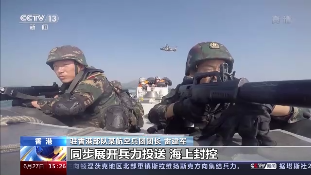 駐香港部隊某航空兵團團長 雷建軍:依托聯合巡邏任務,我們協同海軍和陸軍,同步展開兵力投送、海上封控、臨檢拿捕等多項課目演練,檢驗部隊聯合作戰能力,始終保持備戰狀態。