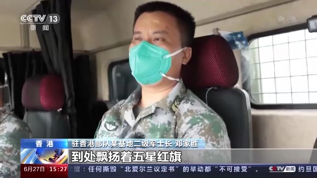 駐香港部隊某基地二級軍士長 鄧家勝:這幾天,香港回歸25周年,香港的大街小巷已經有了慶回歸的氛圍,到處飄揚著五星紅旗。