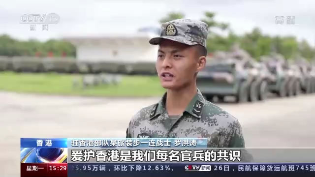 駐香港部隊某團警衛連戰士 王朕:駐守在香江之畔,我們每一名駐港官兵都有著強烈榮譽感,我們必須完成好黨和人民賦予我們的神圣使命。