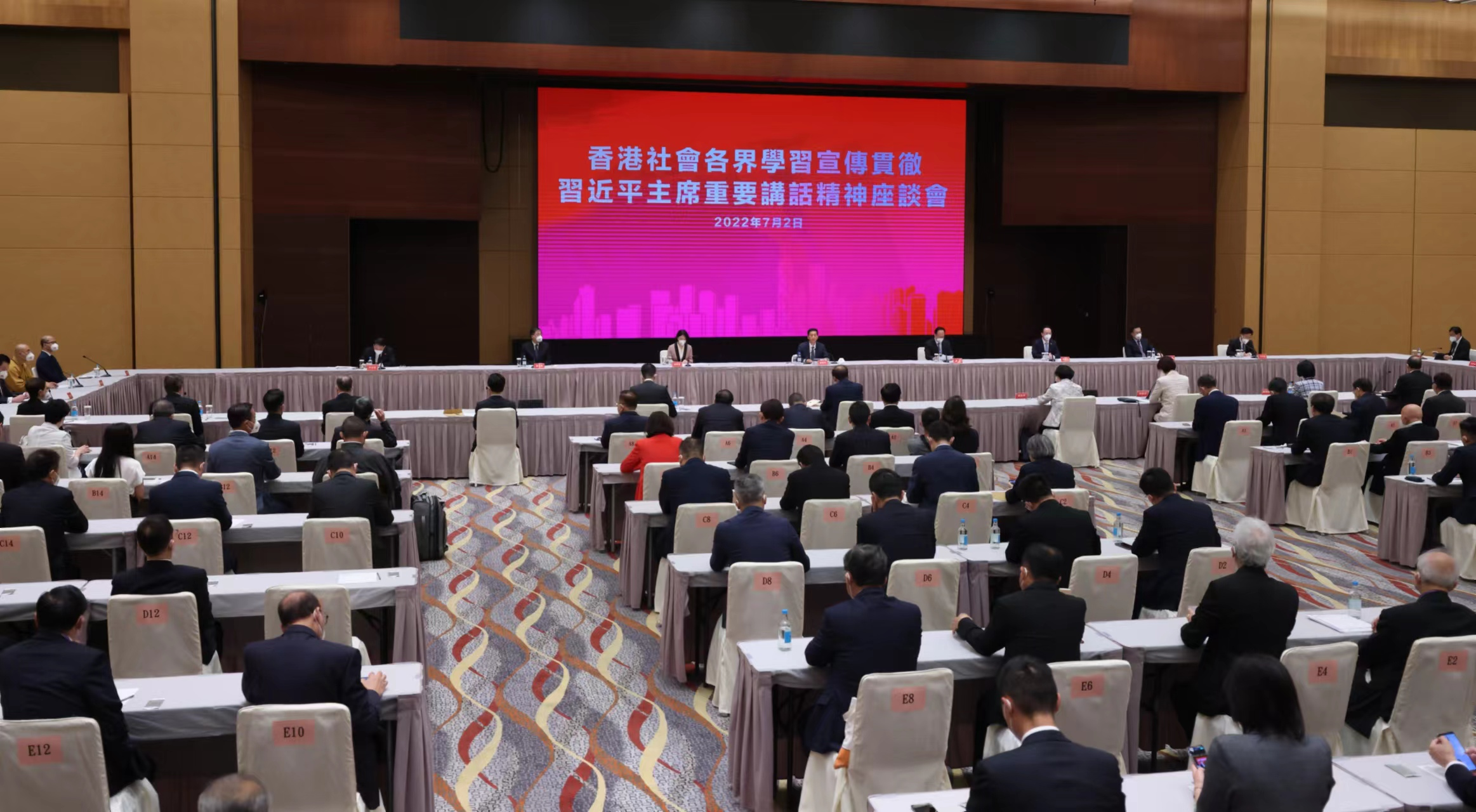 7月2日上午,中央政府駐港聯絡辦舉辦香港社會各界學習宣傳貫徹習近平主席重要講話精神座談會。中央政府駐港聯絡辦主任駱惠寧出席并作導讀發言,港區全國人大代表、全國政協委員、香港主要政團社團代表、駐港中資企業負責人、社會各界代表人士,以及中聯辦有關負責人等共200余人參加。中聯辦副主任陳冬主持座談會。