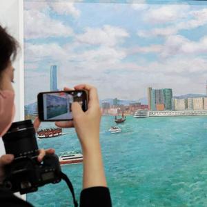 此外,表現粵港澳大灣區建設成就的港珠澳大橋、獅子山下傳統與現代結合的建筑、香港城市的美麗風景、朵朵綻放的紫荊花……包含這些與港人生活密切相關元素的畫作也是本次展覽的一大亮點。