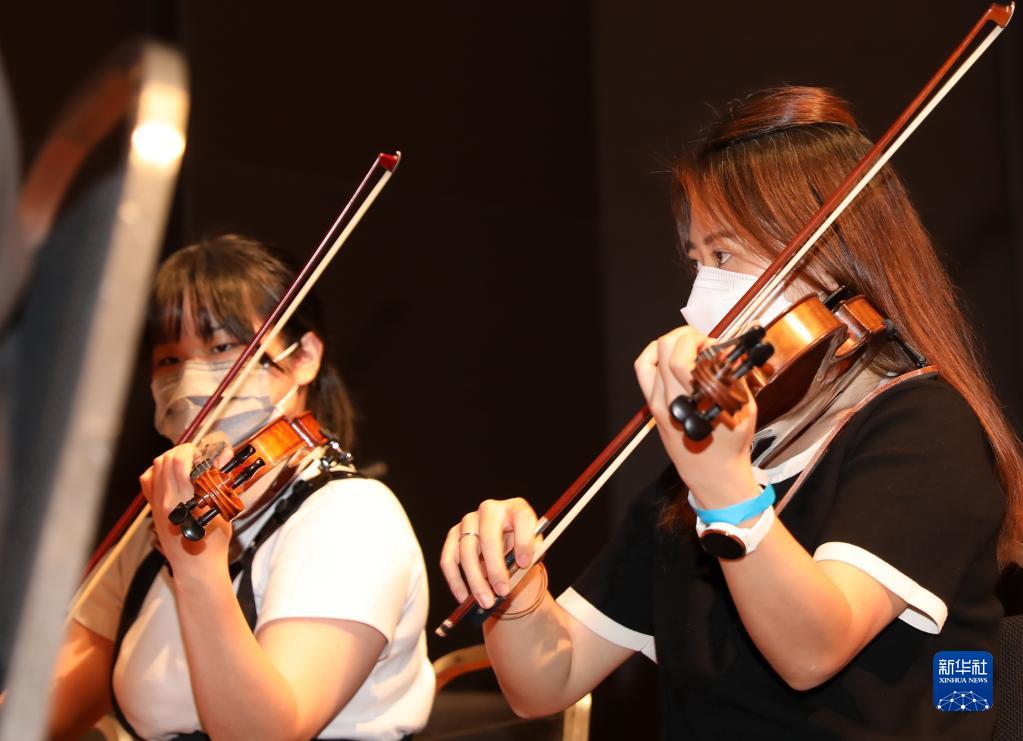 香港浸會大學交響樂團樂手在彩排中演奏(7月11日攝)。新華社記者 吳曉初 攝