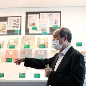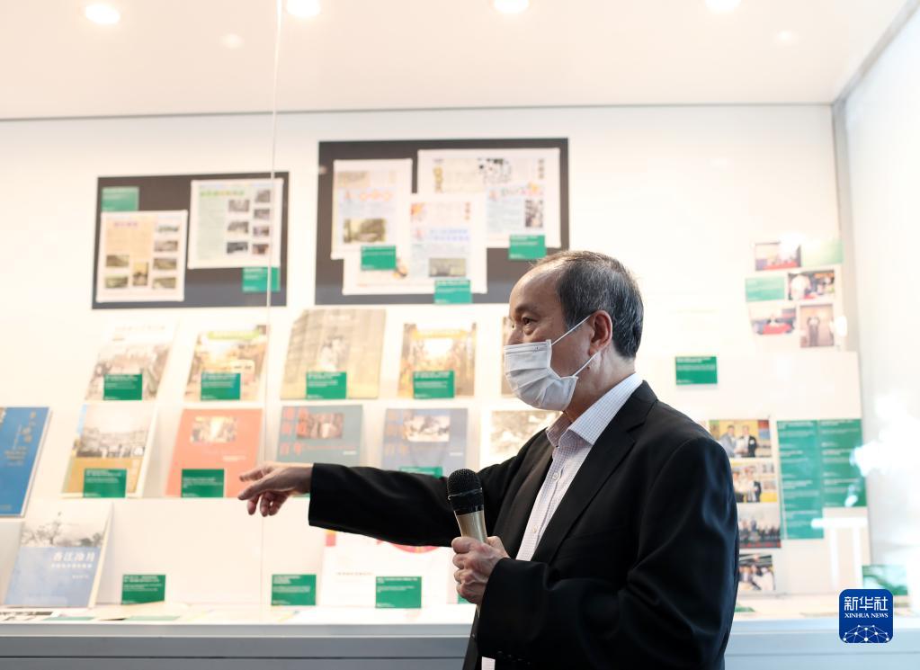 鄭寶鴻為香港書展做展覽介紹(7月19日攝)。新華社記者 李鋼 攝