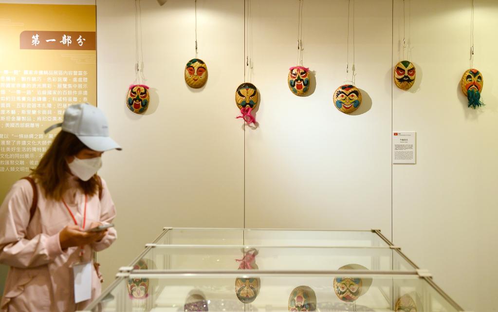 本次活動展覽現場共分為三個展區:多彩絲路——“一帶一路”沿線國家非遺精品展區、國風潮韻——中華非遺傳承精品展區,以及源遠流長——文房書齋精品展區,陳列300余件非遺文化代表作與精品,體現中華文化“和而不同”“美美與共”的開放包容價值觀。