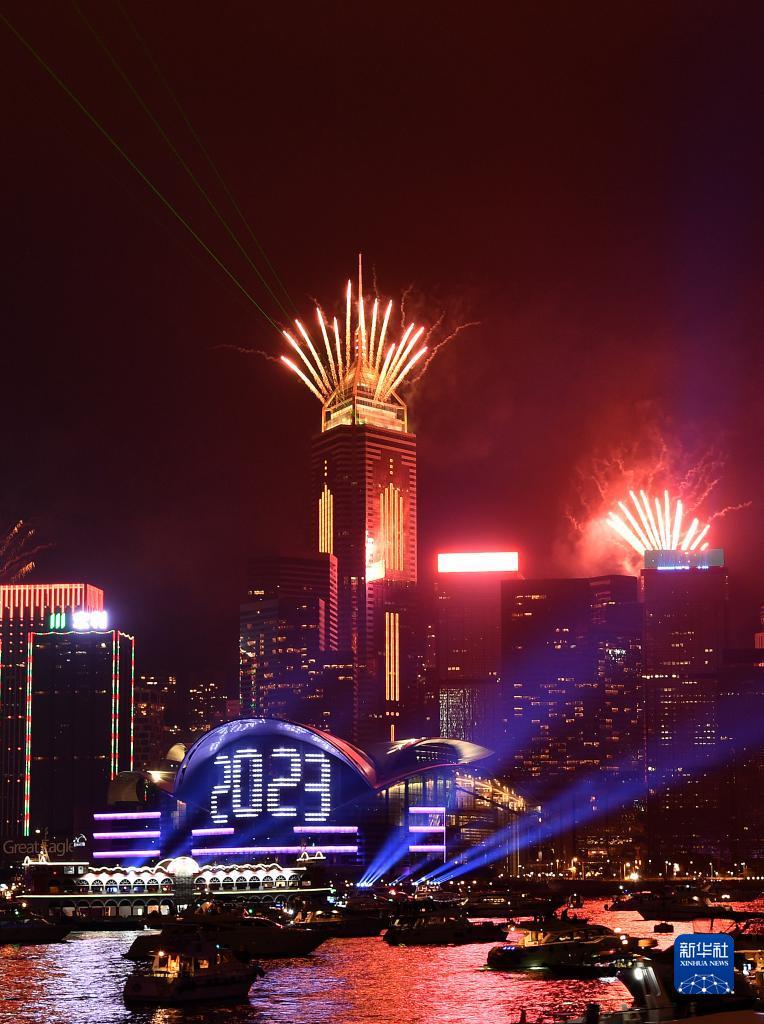 新華社香港1月1日電(記者謝妞)12月31日晚,香港地標維多利亞港變身舞臺,上演集文化藝術、體育、創意動畫與煙火、光影效果等不同元素于一身的多媒體匯演,與香港市民共同迎接2023年到來。