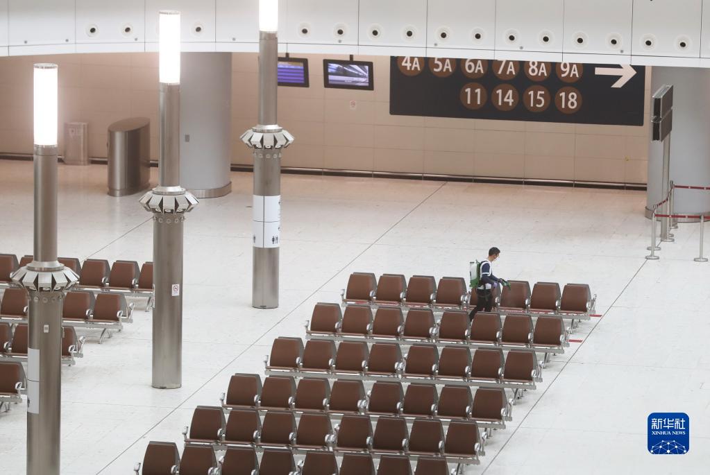 1月12日,在香港的西九龍站,工作人員在清潔消毒。新華社記者 李鋼 攝
