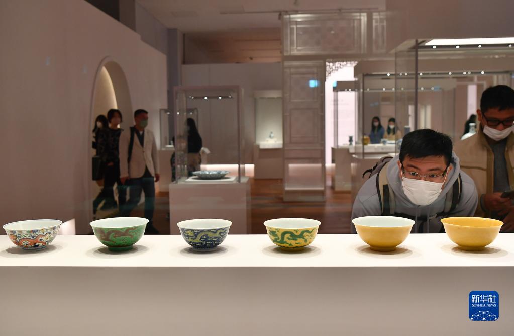 1月19日,觀眾在觀看一套紋碗。 新華社記者 陳鐸 攝