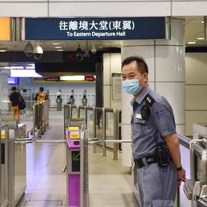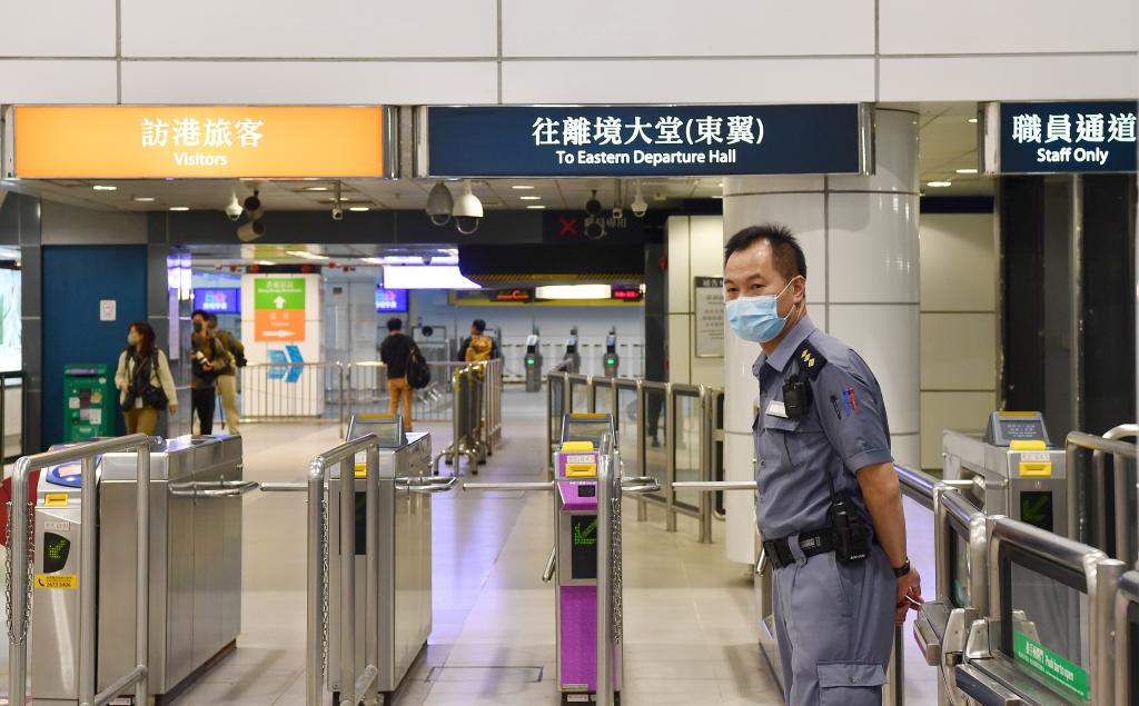 2月3日,一名工作人員在港鐵東鐵線羅湖站內值勤。香港與內地2月6日起全面通關。目前,港鐵東鐵線羅湖站已準備就緒重新投入服務。新華社記者 陳鐸 攝
