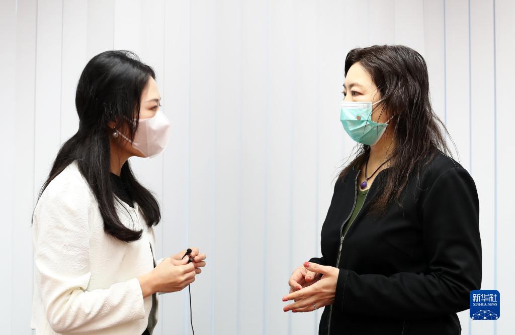 香港公共圖書館總館長江美儀(右)接受記者采訪(1月3日攝)。新華社記者 李鋼 攝