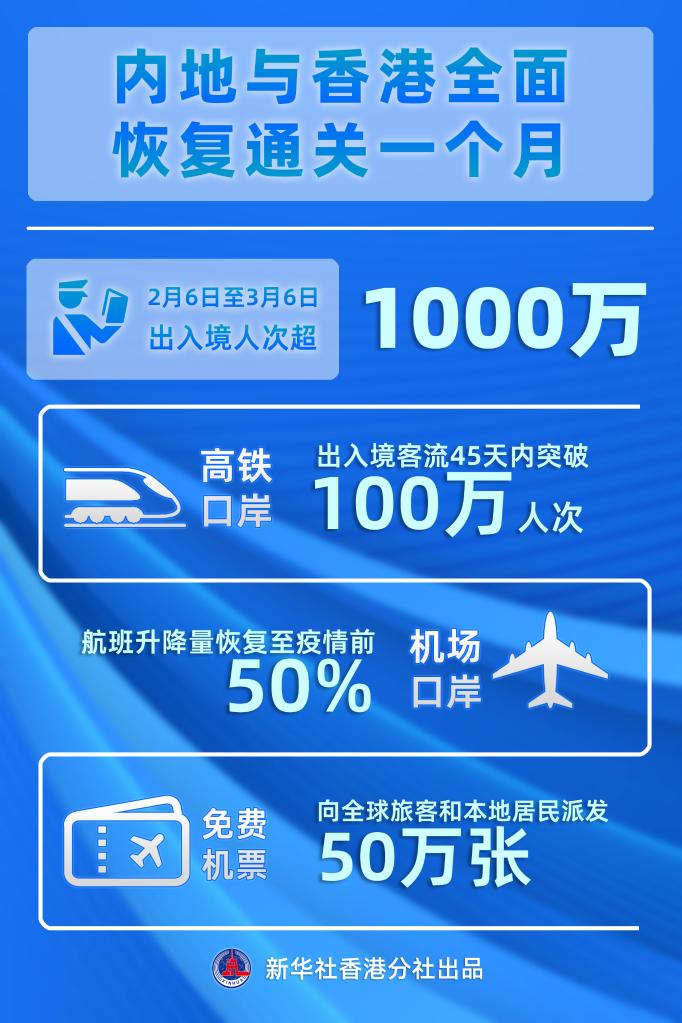 新華社香港3月6日電(記者梁文佳)3月6日,香港與內地全面恢復通關“滿月”。這一個月里,香港鉚足勁頭拼發展,在復常中蓄力實現飛躍。香港與內地經濟、旅游、商務交流等活動正緊鑼密鼓有序開展,人流物流暢旺。