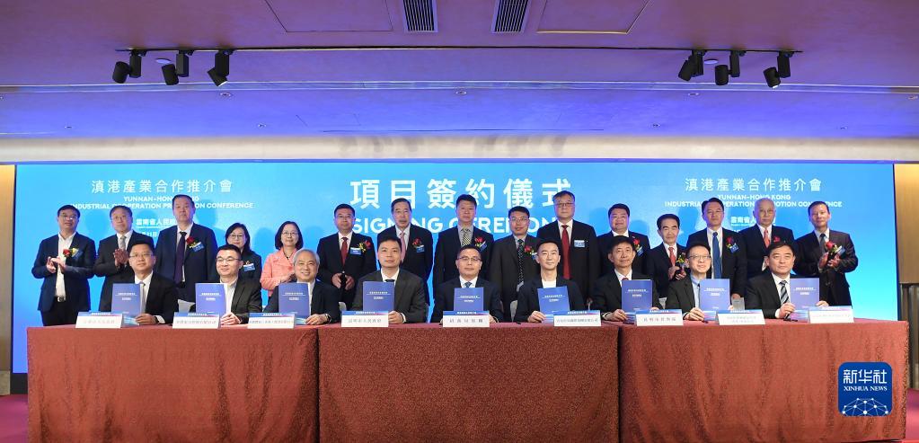 3月21日,云南和香港兩地有關單位和企業代表在滇港產業合作推介會上簽約。新華社記者 陳鐸 攝
