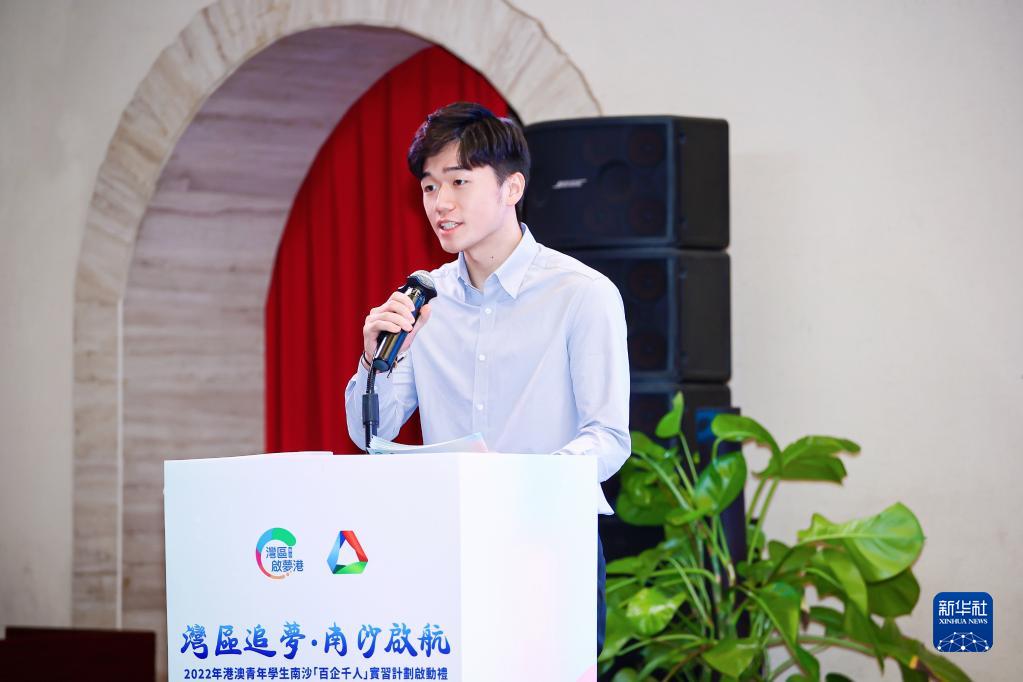 澳門青年李偉杰在2022年港澳青年學生南沙“百企千人”實習計劃啟動儀式上分享經驗(2022年7月28日攝)。新華社發(受訪者供圖)