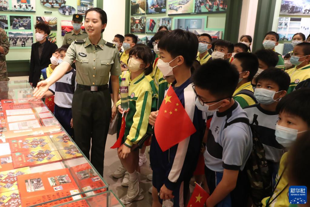 澳門特區政府教育及青年發展局工作人員介紹,今年兒童節,他們安排9所小學260名學生來到軍營,現場體驗模擬訓練、參觀軍事展覽館,度過難忘而有意義的節日。