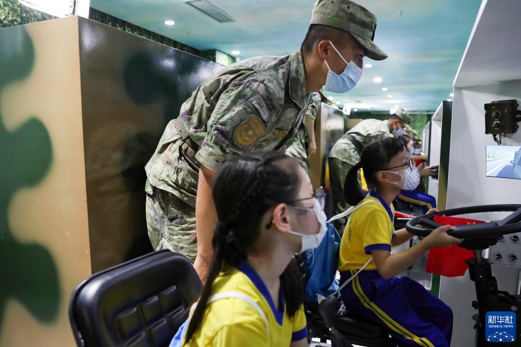 新華社澳門6月1日電(劉剛 李松)“六一”國際兒童節來臨之際,在解放軍駐澳門部隊氹仔營區軍事展覽館模擬訓練中心,澳門勞校中學附屬小學六年級學生吳梓燁在某型裝甲車上做著模擬體驗,進行到關鍵處時,他激動得跳了起來。