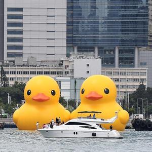 新華社香港6月9日電(記者 謝妞)9日,展覽《橡皮鴨二重暢》在港啟動,迎接兩只“大黃鴨”到港。