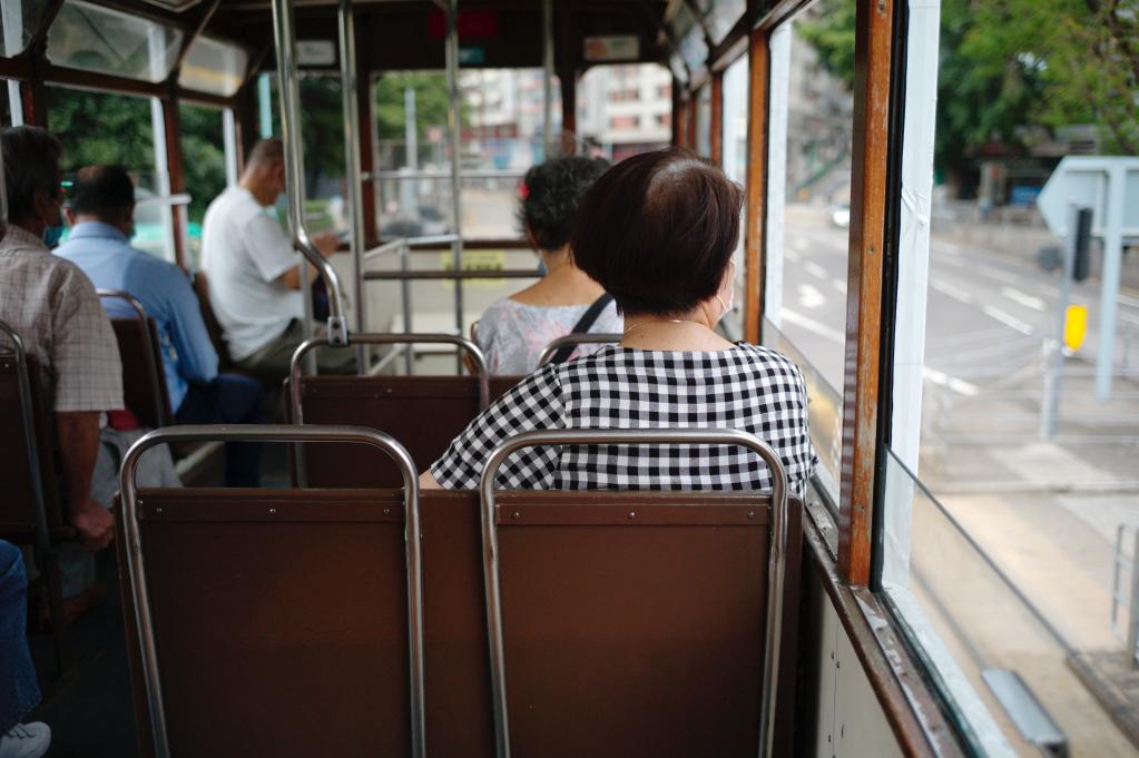 香港市民乘坐“叮叮車”。新華社記者 王申 攝