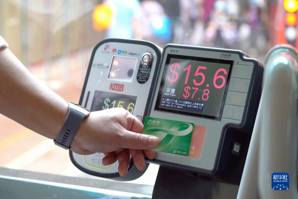 九巴工作人員示范使用長者八達通乘車(5月12日攝)。新華社記者 龍鏡伊 攝