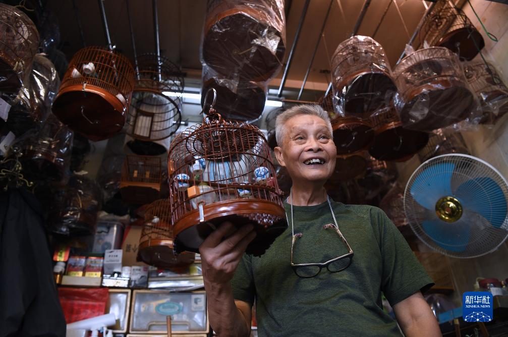 7月的香港潮濕悶熱,這位老人依然氣定神閑,不受干擾。老人名叫陳樂財,今年81歲,人稱“財叔”。13歲他開始跟隨舅舅學習制作雀籠,師從制籠名家,從此與雀鳥結下半生緣。