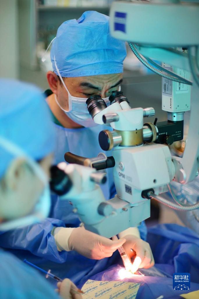 眼科醫生在“健康快車”上為患者實施手術(資料照片)。新華社發