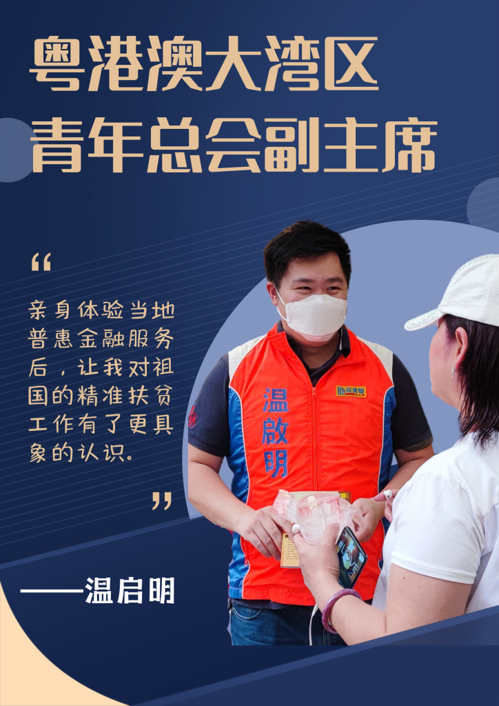 在江西臘樹村,干凈整潔的鄉村環境、色彩斑斕的墻體彩繪和古樸的文化元素,讓粵港澳大灣區青年總會副主席溫啟明眼前一亮?!坝H身體驗當地普惠金融服務后,讓我對祖國的精準扶貧工作有了更具象的認識?!彼f。