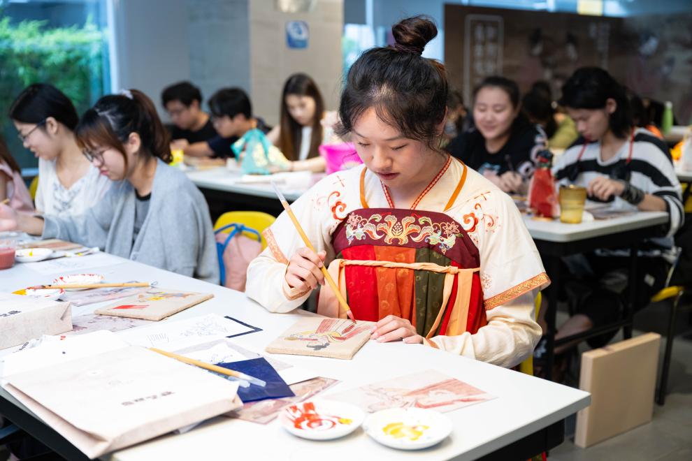 展覽設計了配套體驗活動,陜西歷史博物館工作人員為學生們詳細解讀唐墓壁畫中蘊含的各種知識。澳門大學生還動手體驗壁畫繪制,加深對古代繪畫和服飾文化的理解。