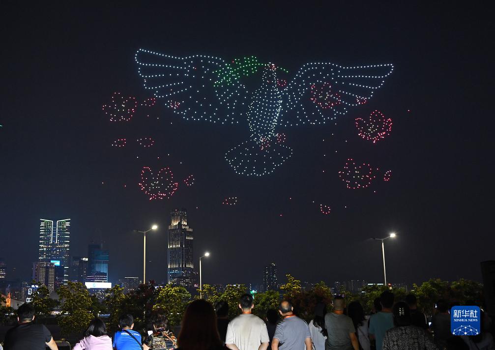 9月30日,深港2400架閃爍著五彩燈光的無人機雙城聯飛,在香港維多利亞港和深圳歡樂港灣舉行“月來越好·歡樂灣區”無人機燈光秀表演,為歡度中秋、國慶“雙節”假期的市民帶來了一場閃耀夜空的璀璨光影秀。
